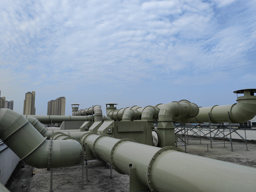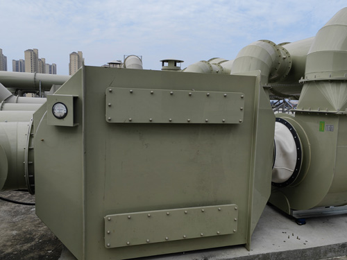 實驗室有機廢氣治理 → 化學活化炭脫水器 → 引高壓離心風機 → 釋放